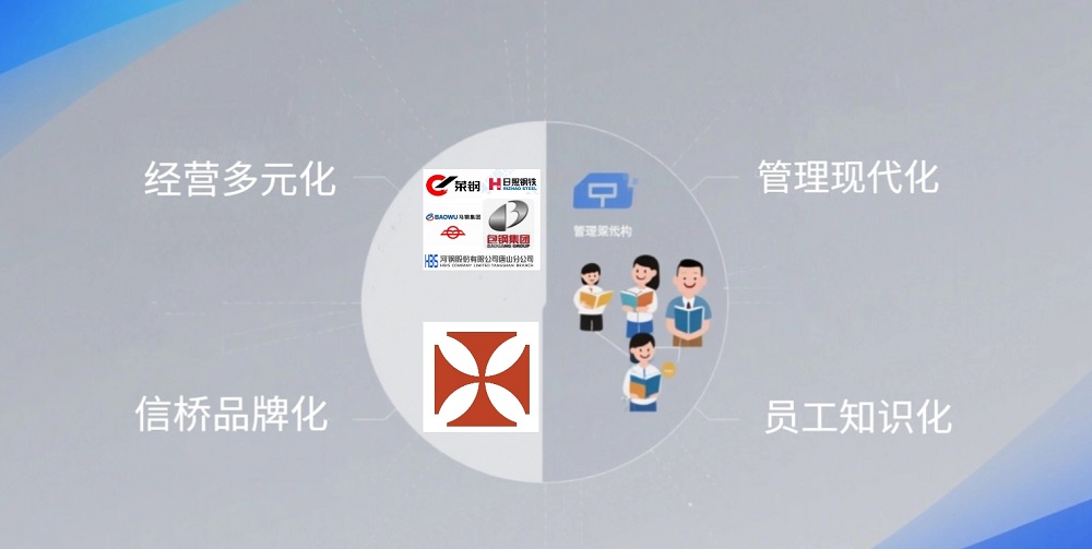 經營多元化、管理現代化、員工知識化、信橋品牌化