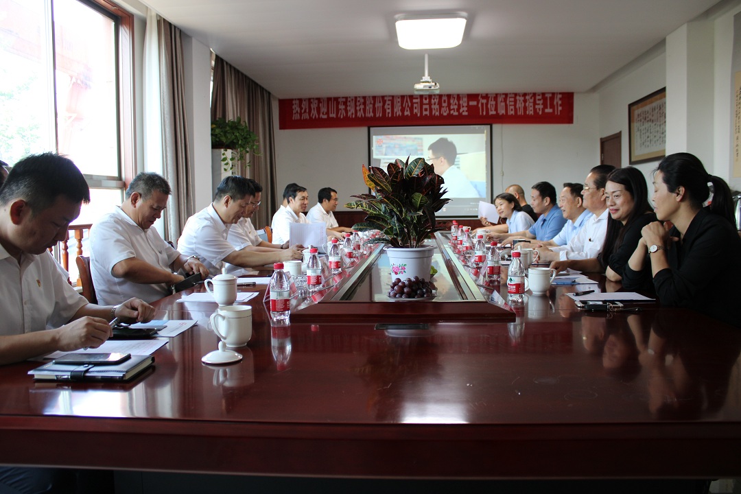 雙方在集團二樓會議室進行座談,就相關問題進行了深入的交流溝通。魯中公司張經理介紹山鋼各部門的領導。徐總向客人介紹了與會的鋼貿負責人,并代表泰安鋼貿商們對山鋼各部門領導表示歡迎。山鋼營銷公司郭偉達書記肯定了信橋這兩年在山鋼的成績,回答了大家在合作過程中的問題、不足和建議,提出了這次座談會的主題。泰安地區(qū)山鋼的代理商們一次發(fā)言,對某些政策、問題,大家展開討論。