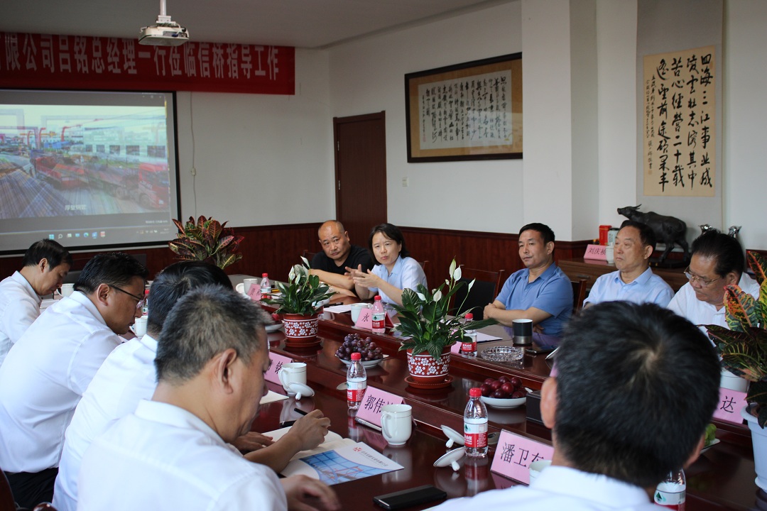 2022年7月7日,山東鋼鐵集團總經理、黨委副書記呂銘,山鋼股份營銷總公司黨委書記、總經理郭偉達一行到泰安信橋考察調研,集團董事長徐立波、總經理徐宏、泰安市鋼貿商會王炳坤以及其他相關公司負責人等熱情陪同。