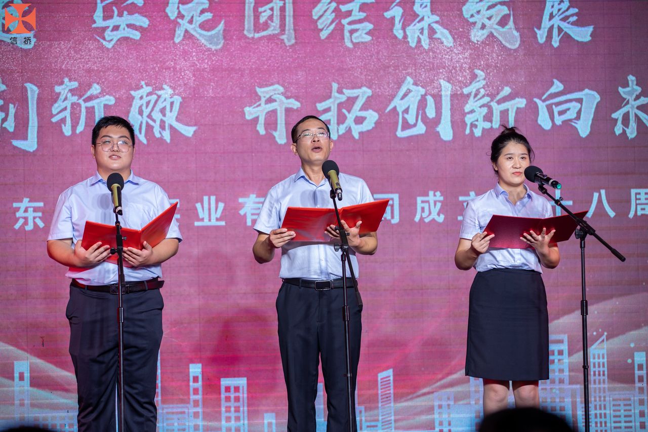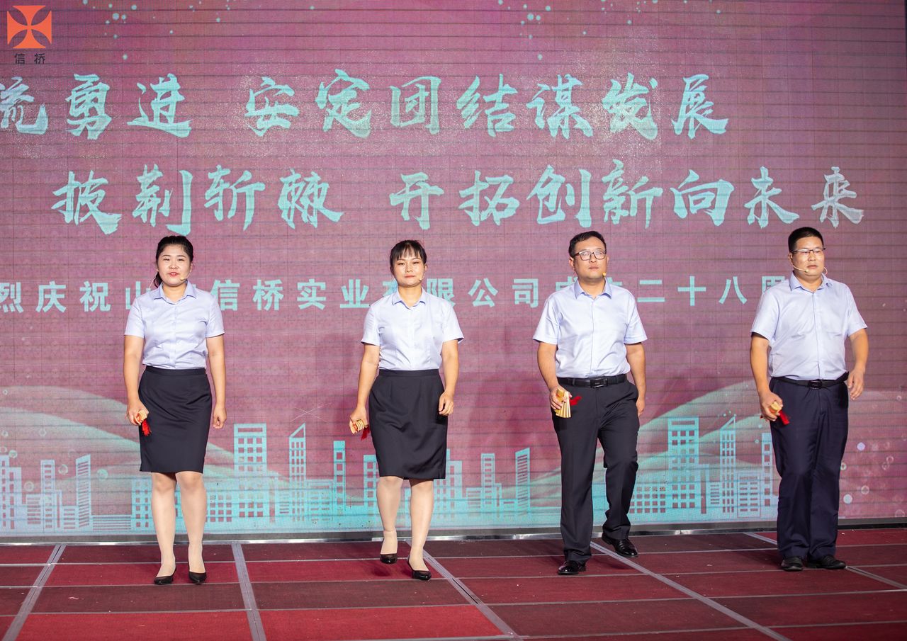 歲月如歌,風(fēng)霜如畫,二十八年彈指一揮間,山東信橋?qū)崢I(yè)有限公司(以下簡稱山東信橋)迎來了二十八周歲的生日。二十八年來,信橋人在激烈的市場競爭中奮力拼搏、砥礪前行,接受了市場風(fēng)風(fēng)雨雨的洗禮,取得了累累碩果。為了慶祝這一特殊的日子,202288日,以“激流勇進,安定團結(jié)謀發(fā)展 披荊斬棘,開拓創(chuàng)新向未來”為主題的山東信橋二十八周年慶典活動在寶盛大酒店舉行。