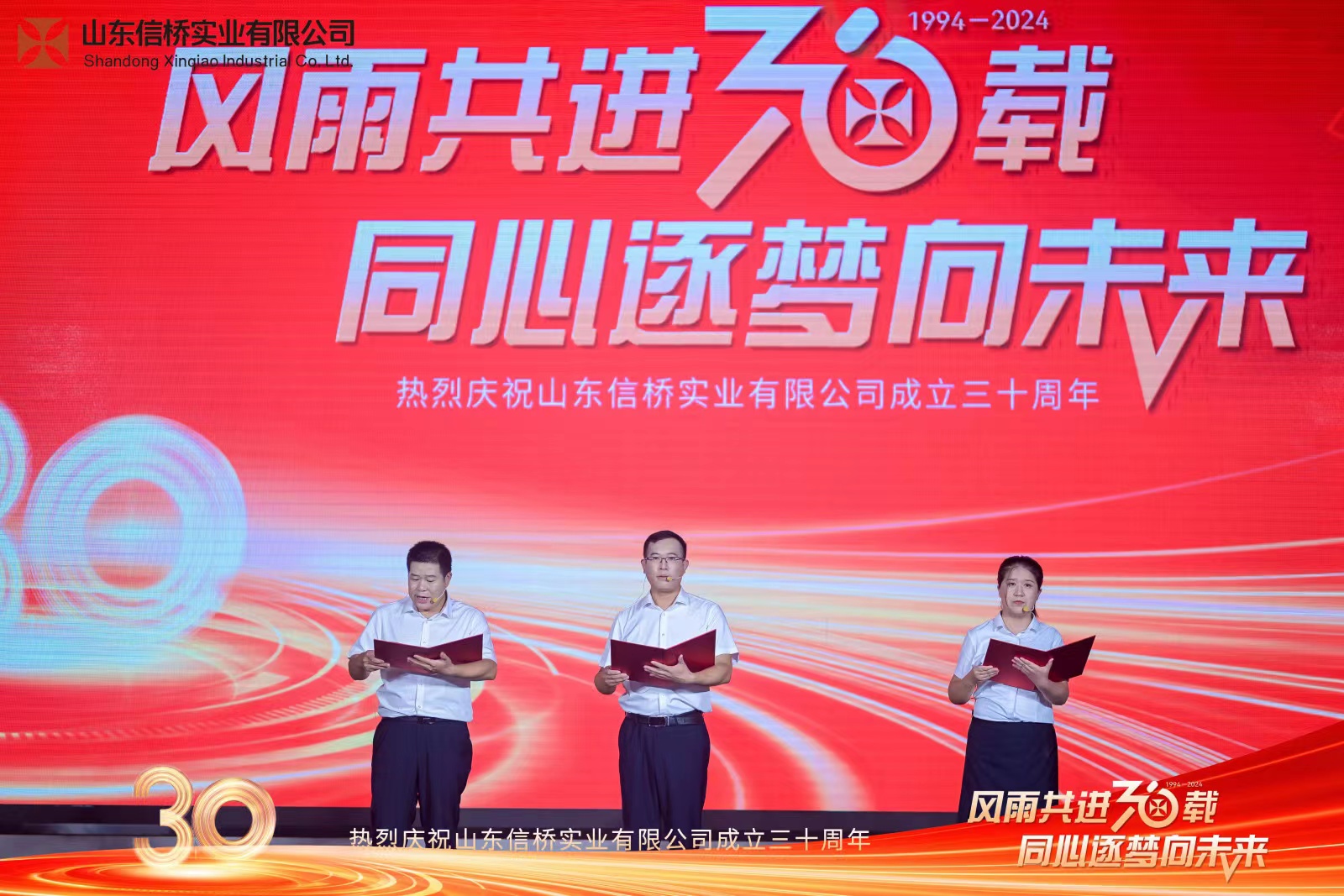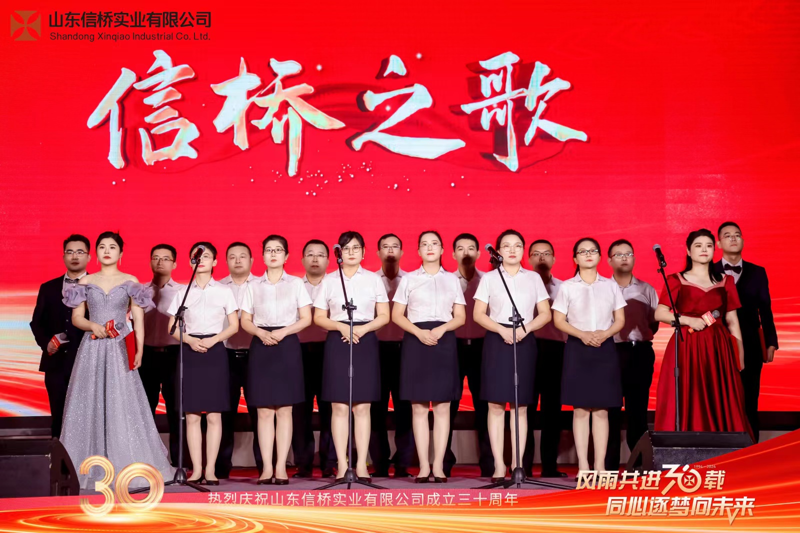 四位主持帶來(lái)詩(shī)朗誦《30而立,行穩(wěn)致遠(yuǎn)》,隨后,全體信橋員工帶來(lái)大合唱《信橋之歌》。
